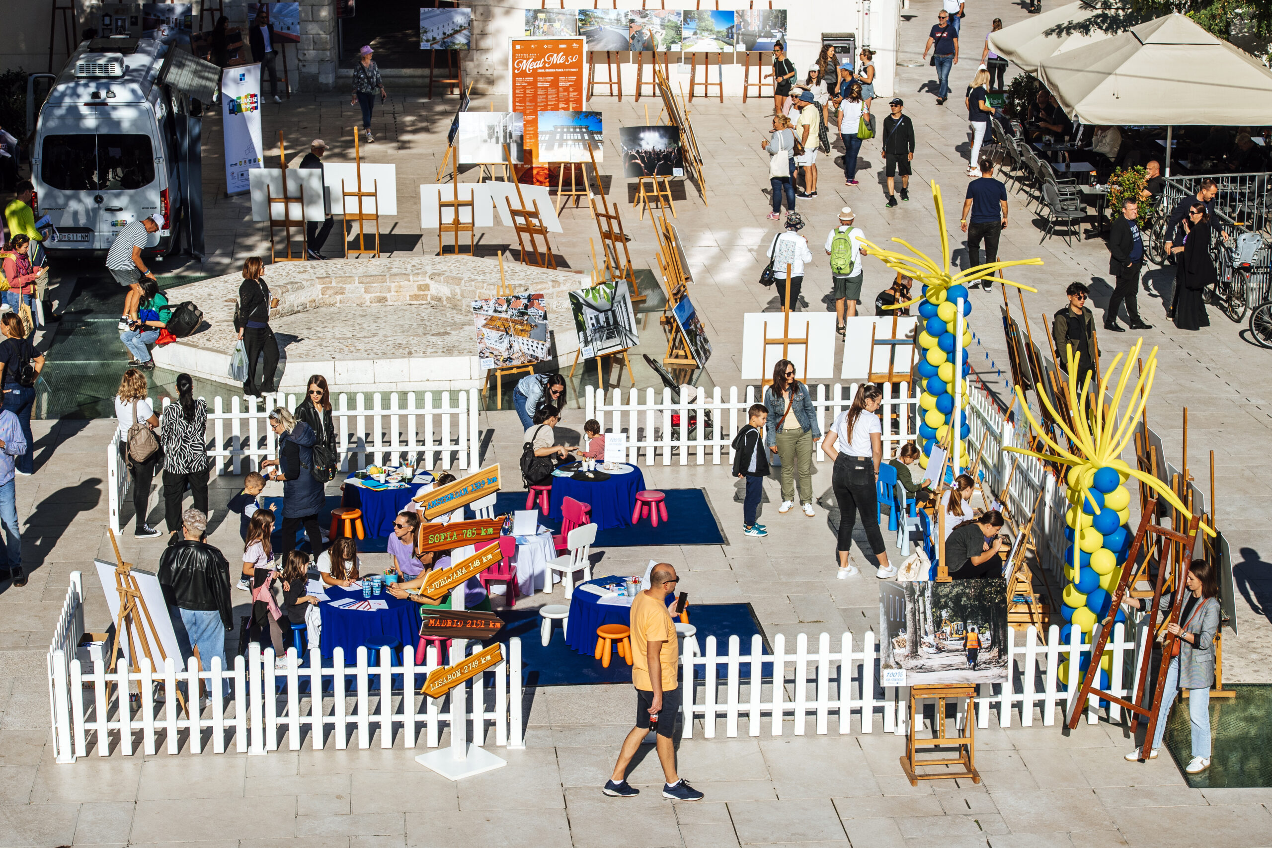 Svoje projekte predstavili su Ministarstvo regionalnoga razvoja i fondova Europske unije, Ministarstvo rada, socijalne politike i mladih, Središnja agencija za financiranje i ugovaranje projekata i programa Europske unije (SAFU), Grad Zadar, Agencija za razvoj Zadarske županije ZADRA-NOVA, Hrvatska agencija za malo gospodarstvo, inovacije i investicije (HAMAG-BICRO), Sveučilište u Zadru, RCK Strukovna škola Vice Vlatkovića, DV Latica, Udruga Robotic, DV Sunce, Gradska knjižnica Zadar i Agencija za ruralni razvoj Zadarske županije (AGRRA), a na trgu je bio organiziran i kutak za najmlađe te izložba zadarskih EU projekata.
